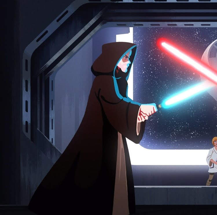 DARTH VADER ON COMBAT VS OLD OBI WAN KENOBI TWO POSTERS